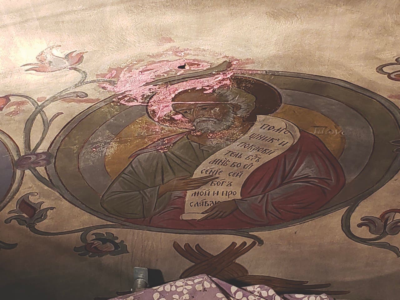 Kouznestov first had to deal with the effects of decades of neglect. Walls and ceilings were damaged by water, and mold spilled from the frescoes. “I touched them with my hand, and it would fall like dust,” he says. “Under the dust was plaster that wasn’t in very good condition, so the first situation I met was how to restore the original plaster under the damage.”
