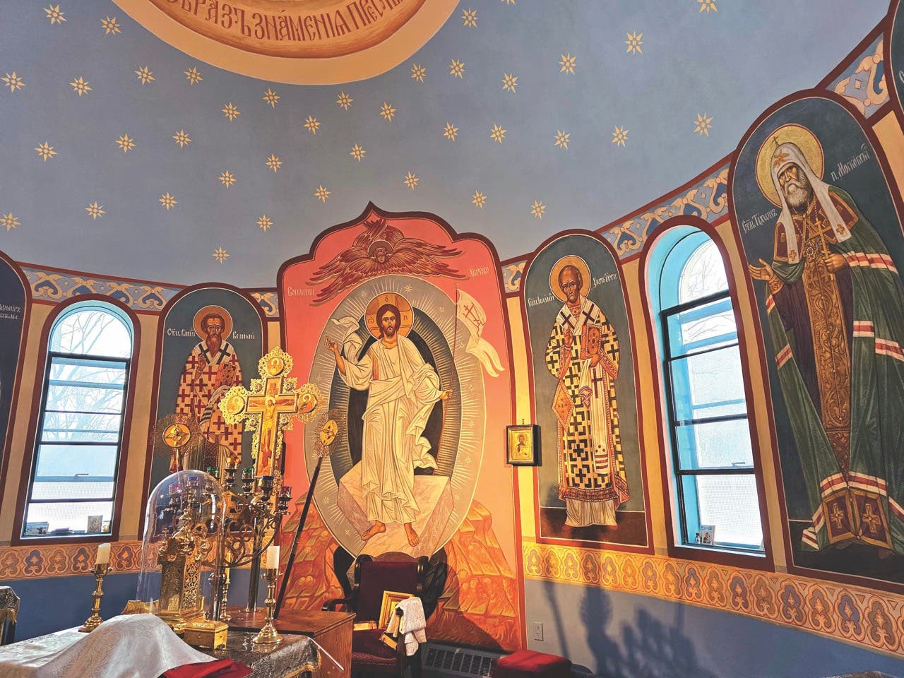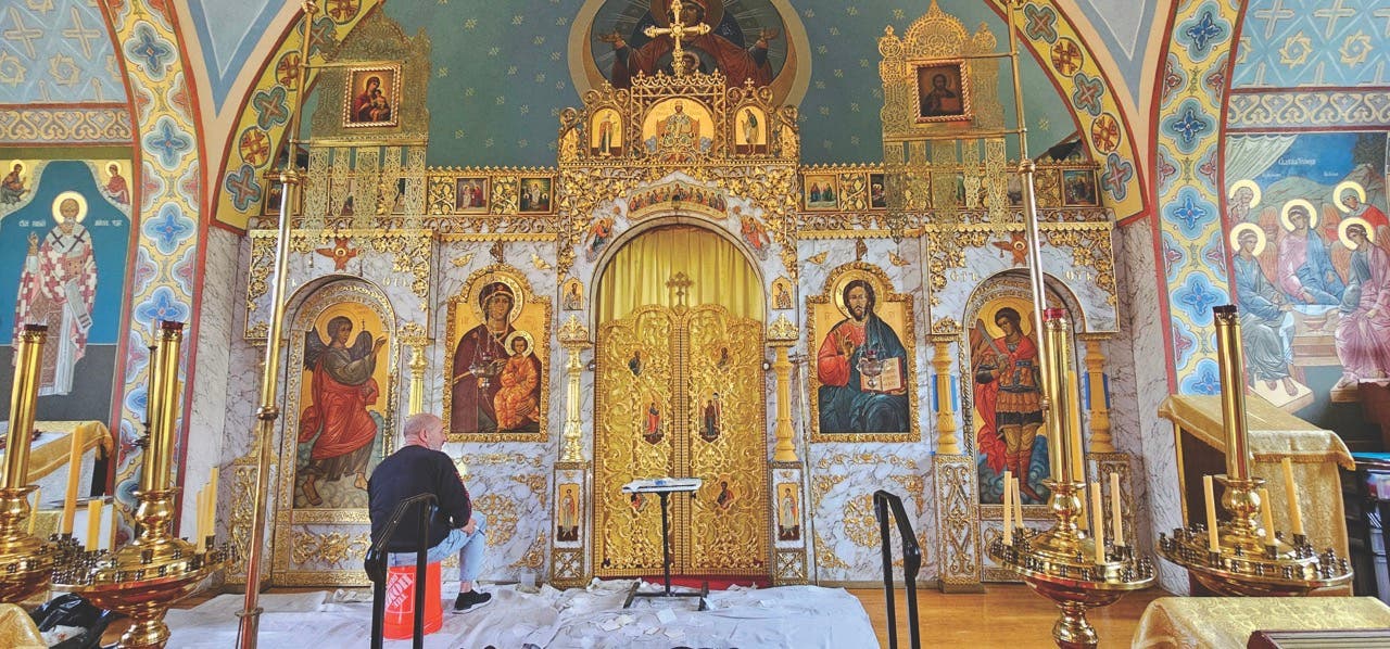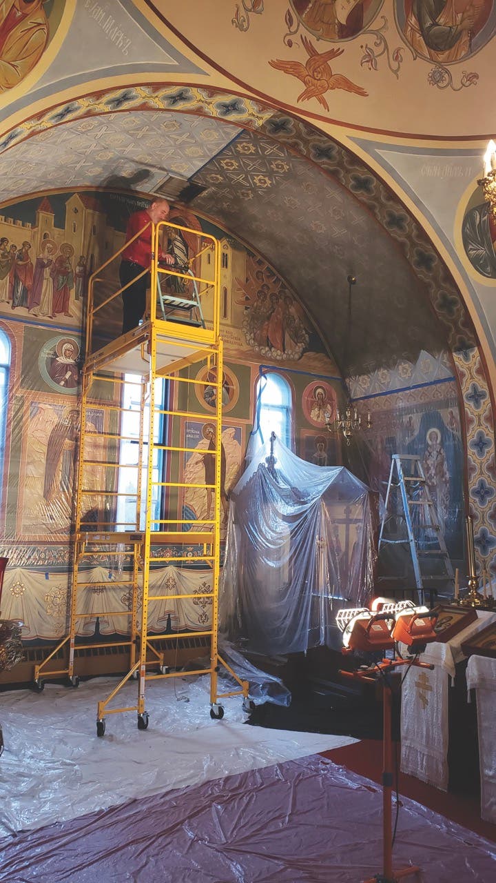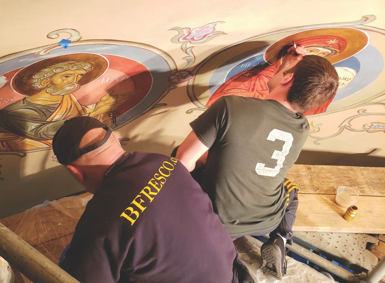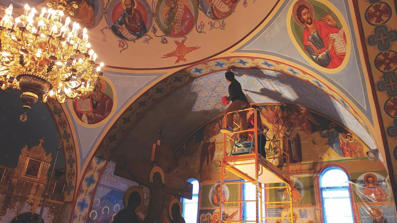 “Orthodoxy in the U.S. remains a small number of people, so they were reaching out, calling around, and checking in with questions about others who had been used for restoration,” says Father John Malcom, current cleric of the church. “It’s a word-of-mouth type of endeavor, and iconography is so special, particularly in frescoes of this scale.”