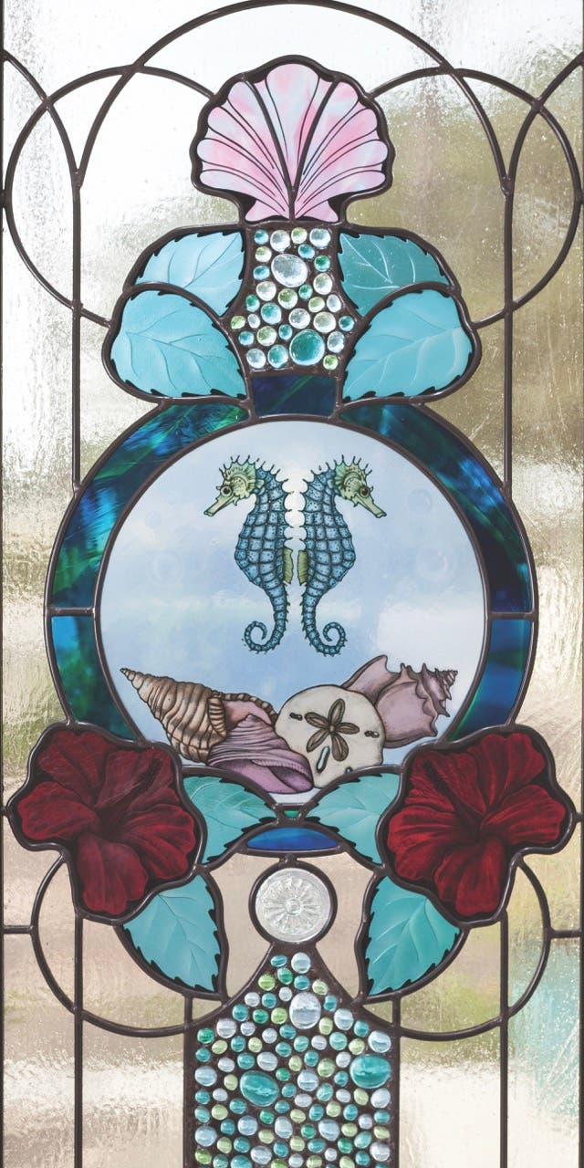 Each member of the team of the Florida-based company, which includes 11 artists, is cross-trained in design, cutting, fabrication, finishing, and installation and has a personal specialty such as figurative art, glass painting, firing, fusing, or hand beveling.