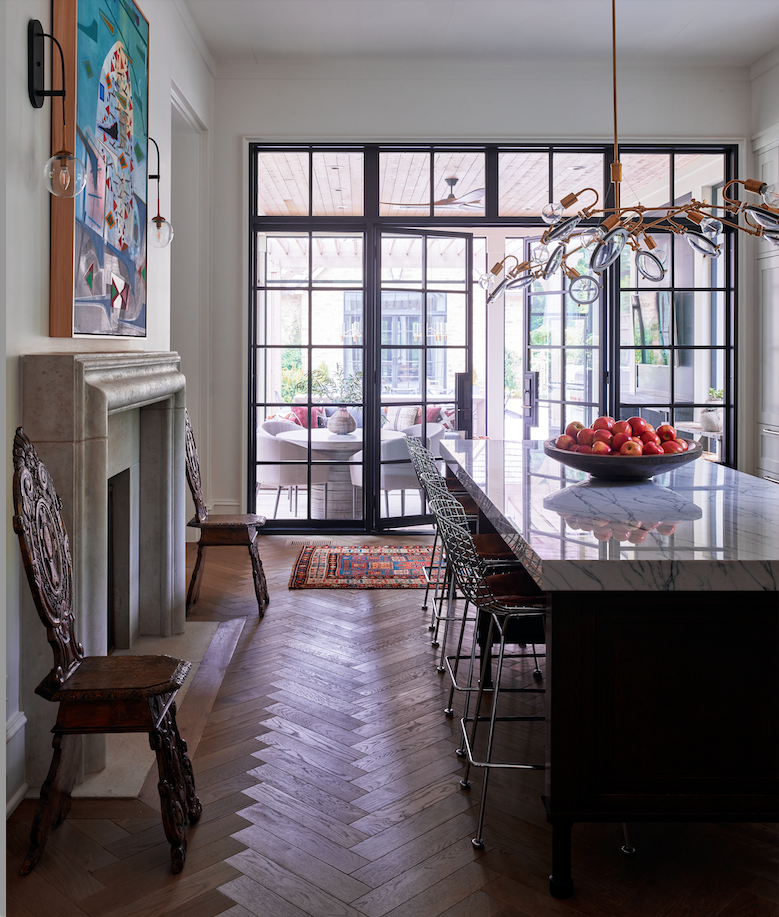 At this rural North Carolina estate, timeless, classical design is combined with modern living. The interior design by Soucie Horner Design Collective is full of richly layered materials, textured finishes that add a rustic elegance, a stylish combination of modern and traditional, and reclaimed wood beams and flooring.