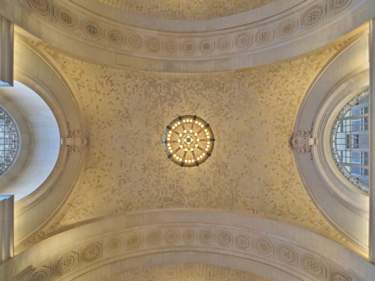 One of the station’s most prominent features is the grandiose Guastavino-vaulted waiting room. The three vaults rise 65 feet, creating a tapestry of layered terracotta tiles.