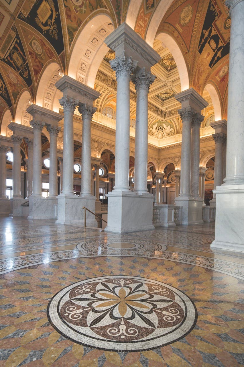I ask Austin, “With so much historic preservation work to be done on the U.S. Capitol campus, how do you find the right craftspeople to do it?” About a third of his facilities staff are tradespeople, including carpenters, painters, and plasterers. “We try to do a lot of it in-house, which requires training,” he explains. “Some of our crew members have been working on these buildings for over 30 years. We pair them with newer staffers in an apprentice program. For example, we will teach a painter to be a decorative painter. But we also hire outside specialists, like stone masons, hardware restorationists, and conservators.”