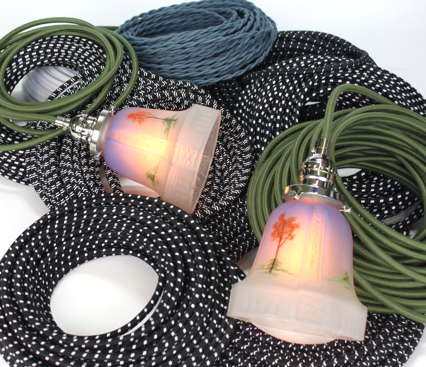 We offer an extensive palette of colors and braid styles - from understated neutrals to saturated jewel tones - along with twisted pair, parallel cords, overbraid, and specialty configurations. Available in multiple gauges to support various electrical applications. Each is made to complement high-quality fixtures, period hardware, and bespoke fabrication work.