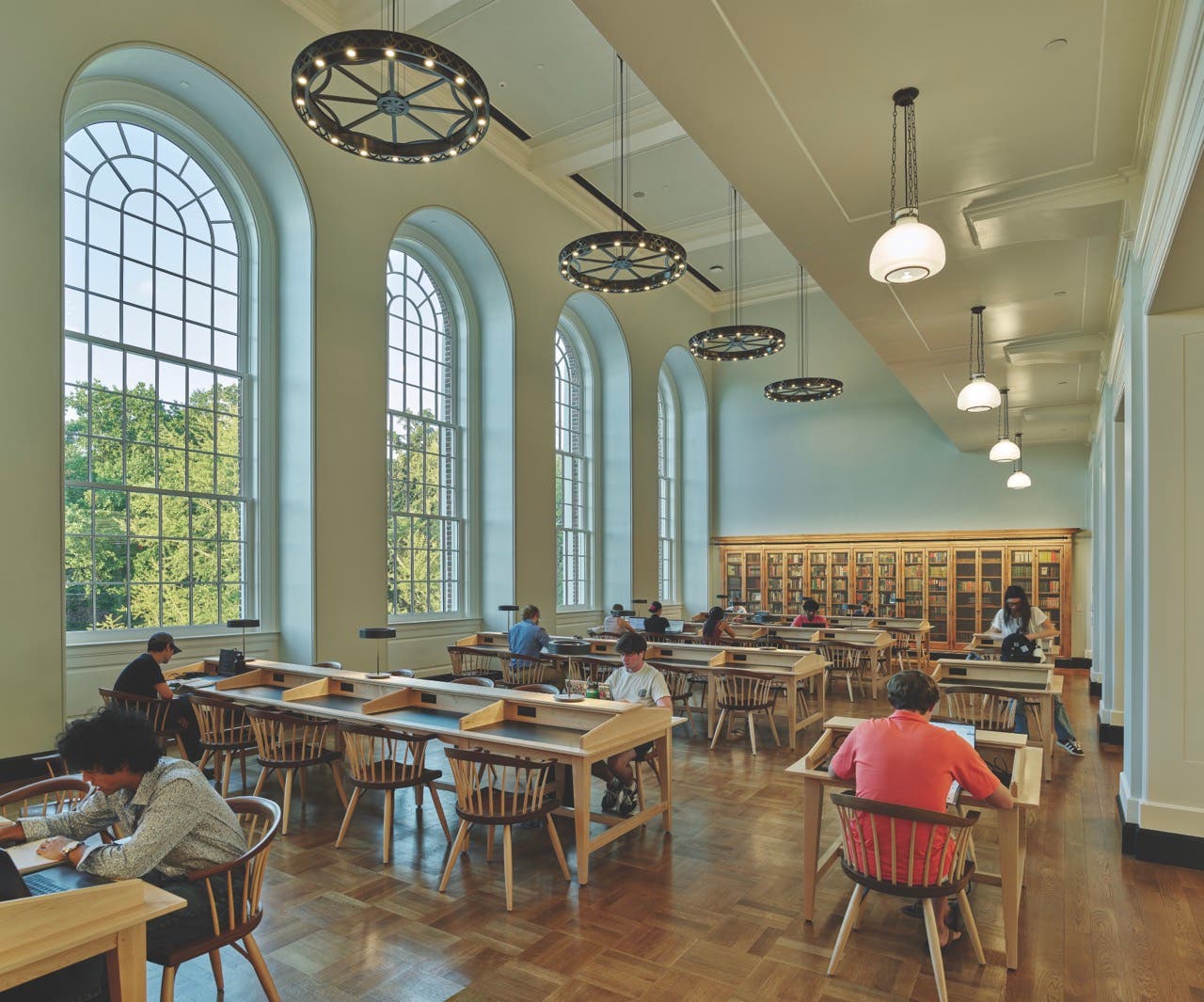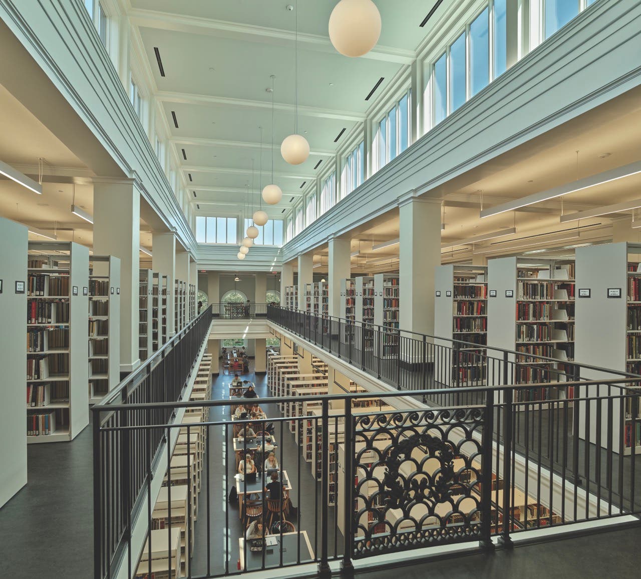 In the same style as the historic portion of the building, it replaces dysfunctional closed-stack structures—the 1938 old stacks and the 1967 new stacks—with study and meeting spaces and houses a book collection in central, accessible, open stacks.
