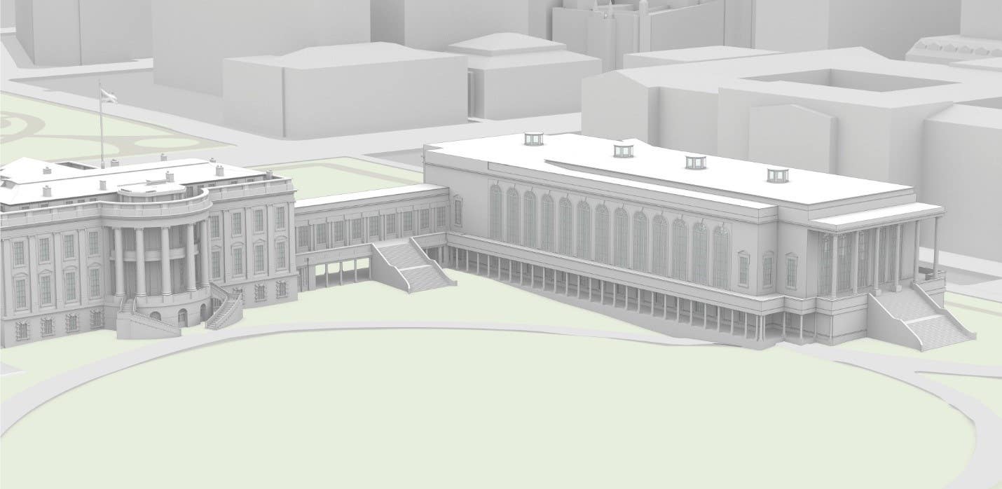 Tradition supplies ample precedents. The Palladian tradition that includes the White House has often equipped a main building with wings holding ancillary services. The White House has had them from the beginning. Larger, new wings would pull together a pair of bigger buildings, the Treasury to the east and the former War and State, now the Eisenhower Executive Office Building, to the west, that were sited there for proximity to the Executive Mansion. The urbanism of the 1902 McMillan Plan that led to the Washington we know today proposed additional buildings serving executive departments for three sides of Lafayette Park facing the White House grounds; they were later built in the Federal Triangle.